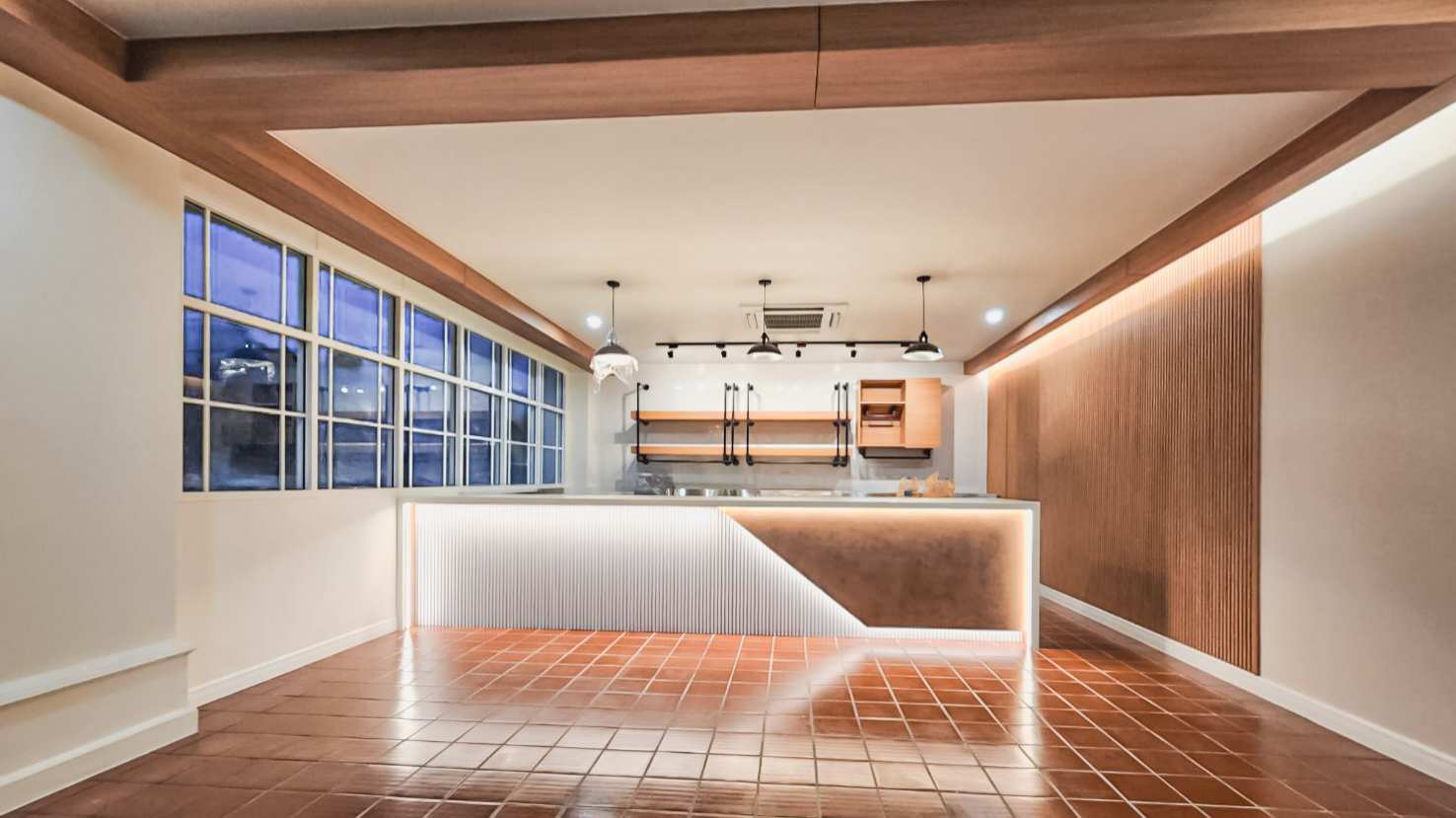 ในโปรเจคนี้เจ้าของต้องการปรับพื้นที่เดิมให้เป็นร้านอาหารเต็มรูปแบบ โดยที่พื้นที่เดิมเป็นแบบ Semi Outdoor เจ้าของต้องการให้วางระบบครัว สำหรับร้านอาหาร พร้อมงานระบบต่างๆ งานตกแต่งภายใน เฟอร์นิเจอร์ภายใน งานตกแต่งร้าน ระบบไฟฟ้า กำหนดระยะเวลา 1 เดือน